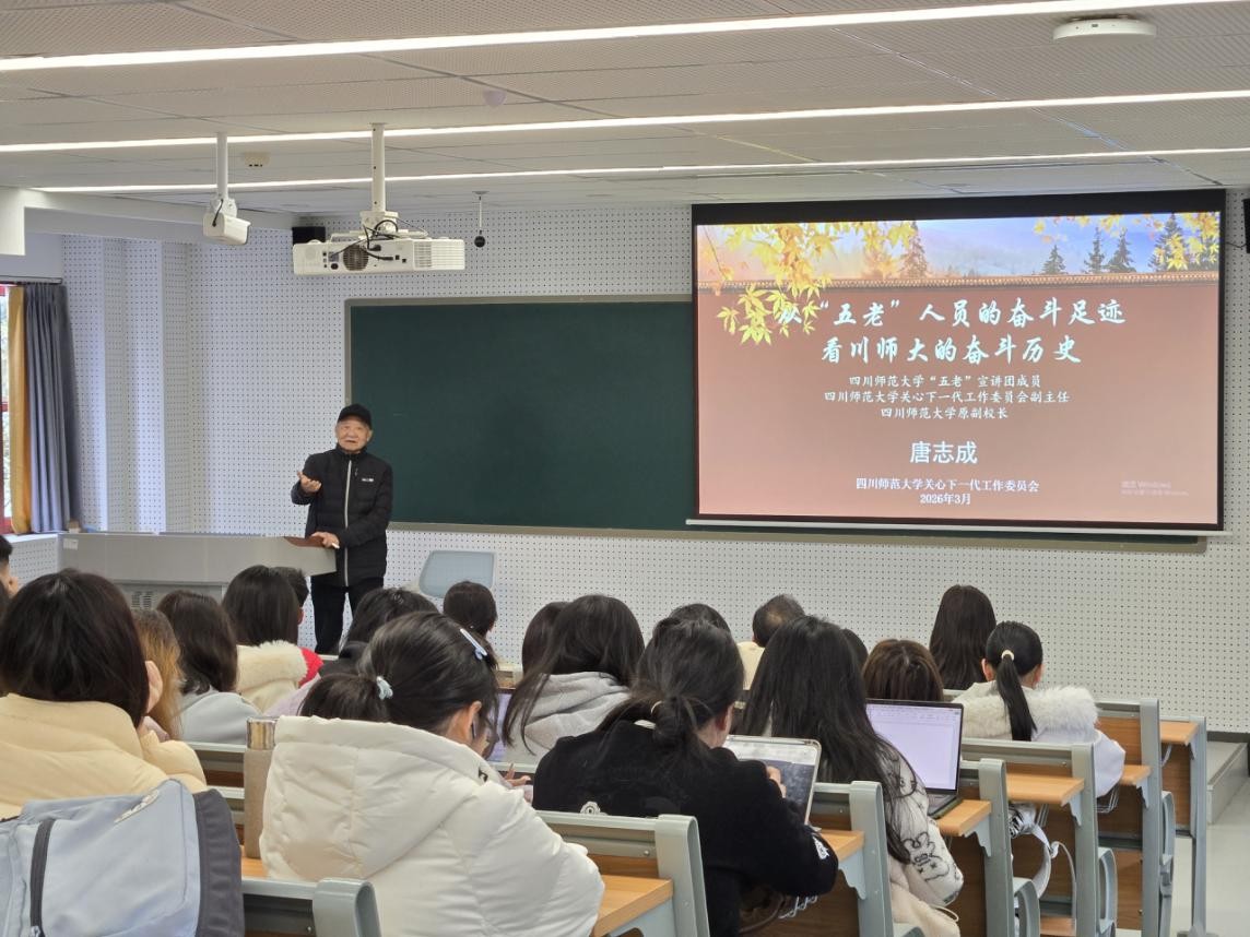 校关工委副秘书长向富国在致辞中指出,“五老”是学校发展的亲历者、建设者,其奋斗历程中蕴藏着宝贵的育人资源。他希望同学们深刻感悟老一辈师大人的初心使命与责任担当,从校史中汲取奋进力量,把个人发展与学校、时代需求紧密结合。